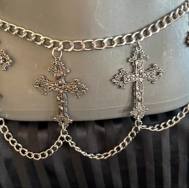 Silver 7 cross gothic belt 44″ broad design to hangover clothes from smoke free environment gothic belt, silver jewellery, cross design, wide belt, statement accessory, metal chain, punk style, edgy fashion, decorative belt, dark aesthetic